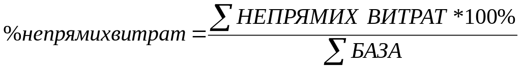 Цьому розрахункові передує розрахунок відсотку надбавки на непрямі витрати. Ця надбавка може розраховуватися із різних баз розподілу таких витрат.