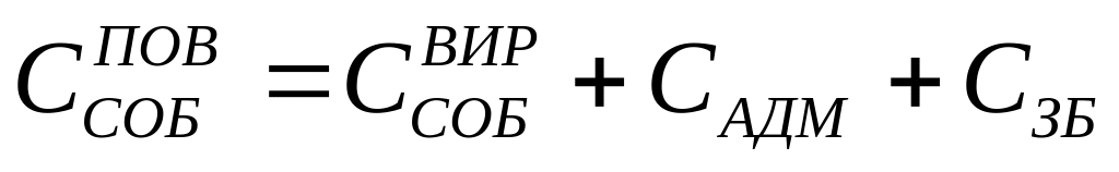 2) Повна собівартість продукції (робіт, послуг), (ССОБПОВ., грн.) - відмінна від виробничої собівартості на величину адміністративних витрат та витрат на збут. Обчислення повної собівартості необхідне для ціноутворення.
