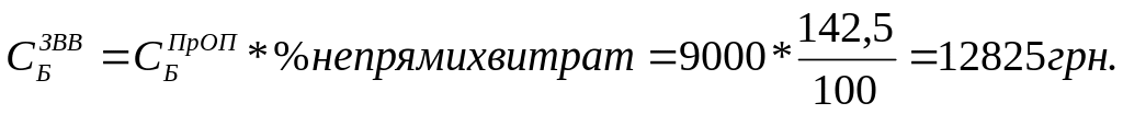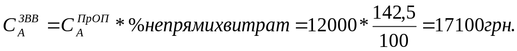 Непрямі виробничі витрати становлять 120 % сумарних прямих виробничих витрат, а позавиробничі витрати – 2,3 % від цієї ж величини.
