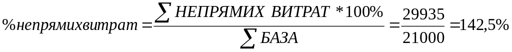 Базою розподілу непрямих витрат являються прямі витрати на оплату праці, сукупна величина яких – 21000 грн.