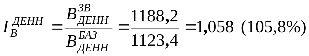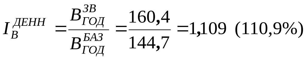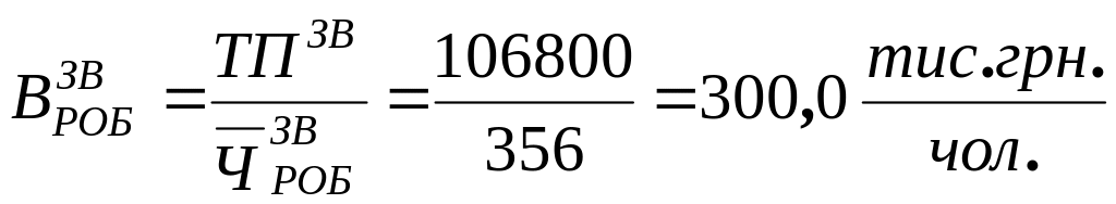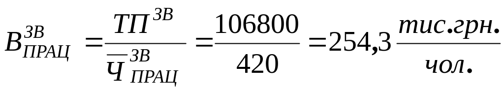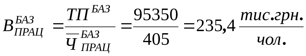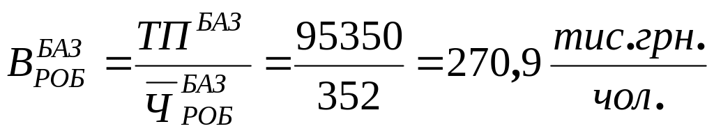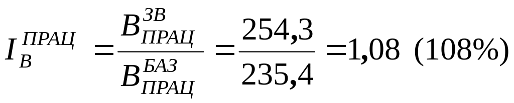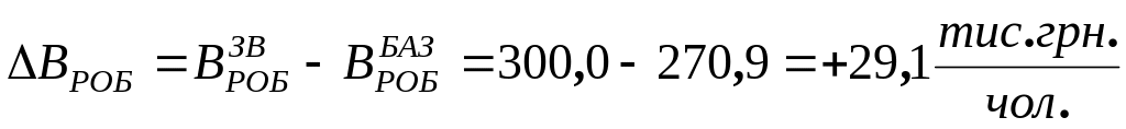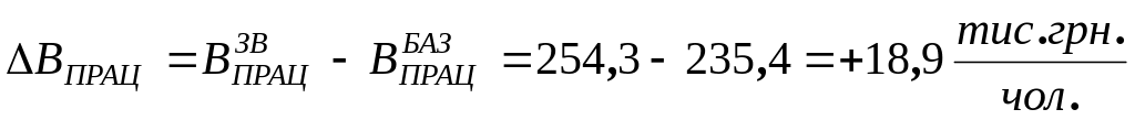 Висновок: на підприємстві рівень продуктивності праці підвищився, про що свідчить збільшення річного виробітку в розрахунку на одного працюючого з 235,4 тис. грн. – у базовому році, до 254,3 тис. грн. – у звітному, збільшення становить 18,9 тис. грн. (або 8 %). У звітному році одним робітником у середньому було виготовлено продукції на 300 тис. грн., що більше, ніж у порівнюваному році на 29,1 тис. грн. (на 10,8 %). Середньоденний виробіток робітників у звітному періоді становив 1188,2 грн./чол., проти 1123.4 грн./чол. – у базовому (зростання 105,8%), а обсяг продукції, який виготовлявся у середньому одним робітником за годину відповідно становив 160,4 грн. та 144,7 грн. (зростання 110,9 %).