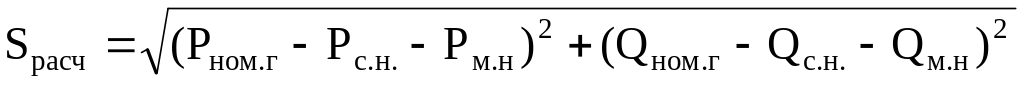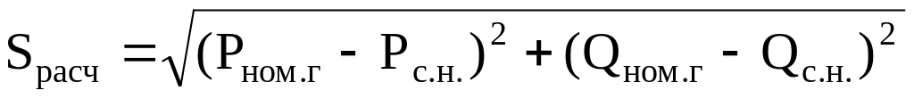 где Рном.г , Qном.г – активная и реактивная номинальные мощности генератора; Рс.н., Qс.н. – активная и реактивная нагрузки собственных нужд; Рм.н, Qм.н – активная и реактивная местные нагрузки.