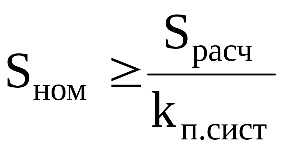 где Sрасч – расчетная мощность; Sном – номинальная мощность трансформатора; kп – допустимый коэффициент перегрузки.