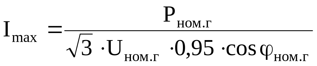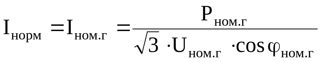 где Рном.г номинальная мощность генератора; Iном.г номинальный ток генератора; Uном.г номинальное напряжение генератора; cosном.г номинальный коэффициент нагрузки.