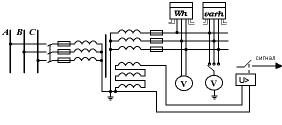 Для питания приборов, имеющих две обмотки напряжения (ваттметры, счётчики) целесообразно применить два однофазных трансформатора напряжения, типа НОЛ или НОМ соединенных по схеме открытого треугольника. При использовании трансформатора напряжения для контроля изоляции в сетях с изолированной или резонансно-заземленной нейтралью (сети 6…35 кВ) следует применить трансформатор напряжения НТМИ, НАМИ или группу из трёх однофазных трансформаторов напряжения типа ЗНОМ, ЗНОЛ, имеющих две вторичные обмотки.