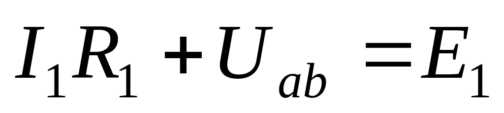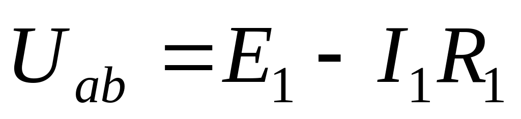 Следует отметить, что уравнение по второму закону Кирхгофа можно записать и для контура, который проходит от одного узла к другому или от одной точки участка цепи и другой по окружающему участки электрической цепи пространству. Например, если необходимо определить напряжение между узлами a и b (рисунок 1.15), составим уравнение по контуру, образованному ветвью E1, R1 и пространством между точками a и b, представив его напряжением Uab, т.е.