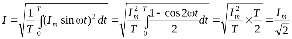 Проинтегрировав (1.31), получим соотношение между действующим и амплитудным значением синусоидального тока: