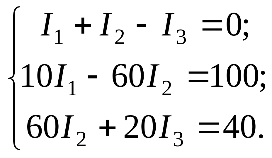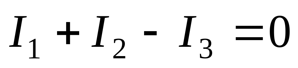 Цепь содержит три ветви с неизвестными токами и два узла. Для определения токов составим одно уравнение по первому закону Кирхгофа и два уравнения — по второму закону Кирхгофа.