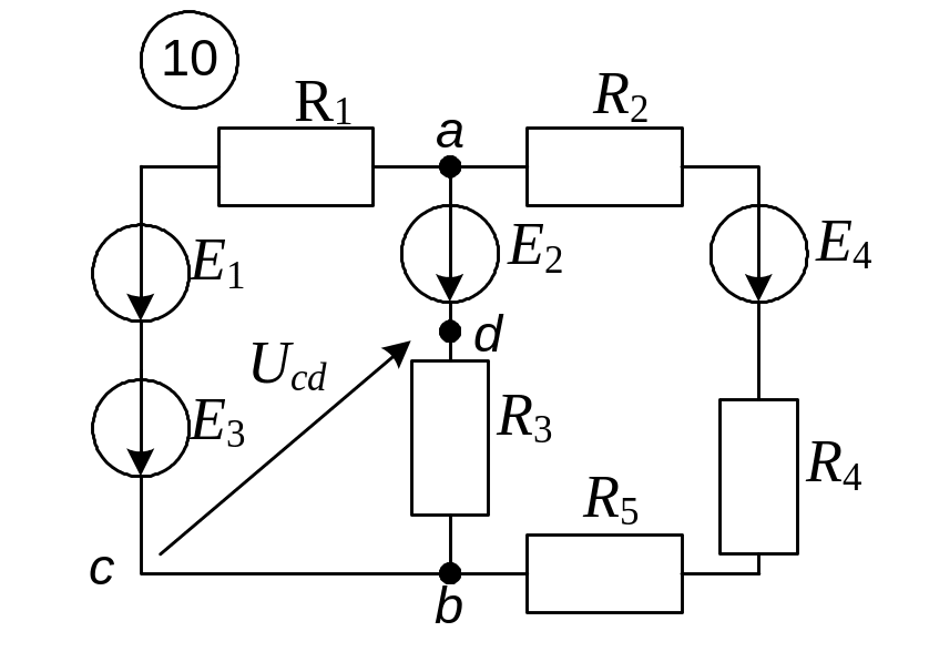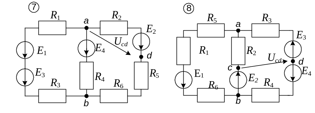 г) выразить напряжение Ucd, используя второй закон Кирхгофа.