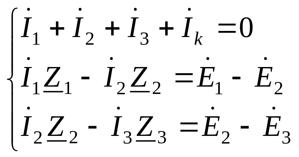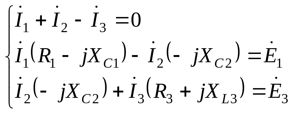 Таким образом, получим систему уравнений относительно неизвестных токов в комплексной форме записи: