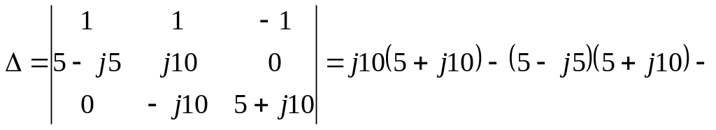 Главный определитель составляем из коэффициентов при неизвестных токах: