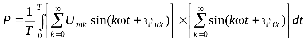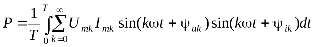 Из этого выражения следует вывод, что активная мощность несинусоидального тока равна сумме активных мощностей отдельных гармоник (постоянная составляющая рассматривается как нулевая гармоника с φ0 = 0):
