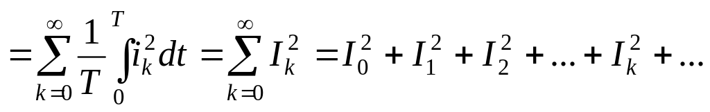 то есть, действующее значение периодического несинусоидального тока равно корню квадратному из суммы квадратов постоянной составляющей и действующих значений всех гармоник.