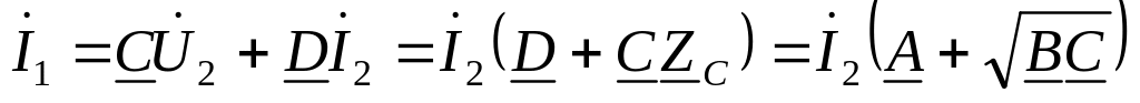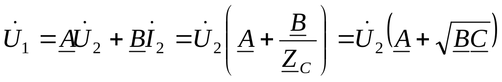 Уравнения четырехполюсника могут быть выражены через вторичные параметры, в частности, для симметричного четырехполюсника согласно (3.62):