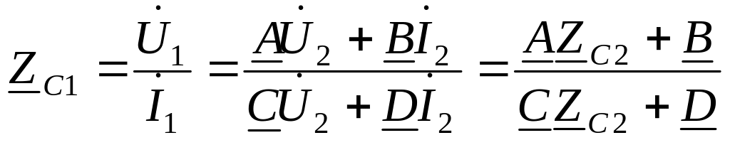 Характеристическим сопротивлением симметричного четырехполюсника называют такое сопротивление ZC, которое, будучи подсоединенным к выходным зажимам четырехполюсника, обуславливает его входное сопротивление, также равное ZC.