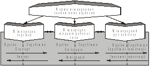 Механізмом реалізації світогосподарських зв’язків є світовий ринок як сфера усталених економічних відносин, що ґрунтуються на міжнародному розподілі праці. Господарські зв’язки на світовому ринку проявляються через форми міжнародних економічних відносин — міжнародну торгівлю, міжнародну міграцію робочої сили, міжнародний рух капіталу, а також валютно-кредитні відносини (рис. 1).