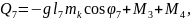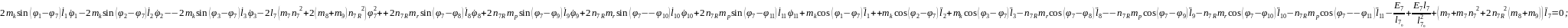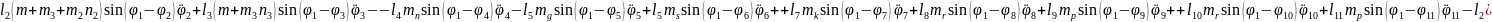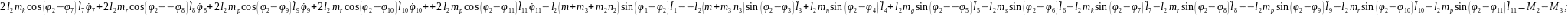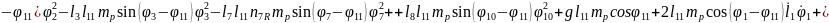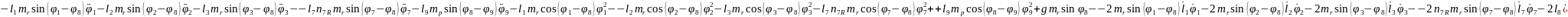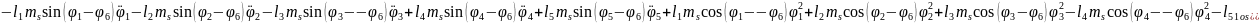 (2.55), (2.58) формулаларды (2.53) орнына қойып, буындардың бұрыштық координатасын (2.64)-(2.75) және бұрандама ұзындық тербелісінің (2.76)-(2.87) өзгерісін суретейтін, адам пішінді он бір буынды механизмді қозғалыстар теңдеулер жүйесін аламыз.