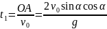 Парабола үшін уақыт (2.3) формуласымен өрнектеледі, ал түзусызықты қозғалыс үшін келесі формула қолданылады: