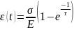 ε(t) тәуелділігін (3.4) дифференциалды теңдеуін және бастапқы уақыт моменті t=0, деформациясы ε=0 деп есептеу арқылы отырып шешеміз.