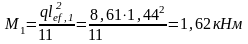 де М1 – згинальний момент у першому прольоті, М1=1.62кНм;