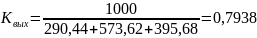 1.10. Визначаємо коефіцієнт виходу бетонної суміші: