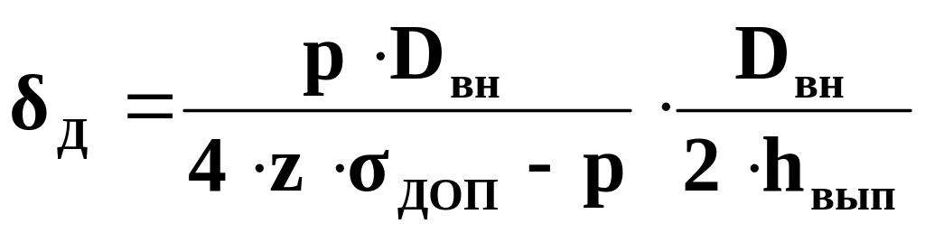 где р - расчетное давление, Па; σдоп -допускаемое напряжение, Па;