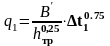 Задавшись рядом значений Δt1, вычислим соответствующие им величины Δt10,75 и q1. Строим кривую (рис. 3).