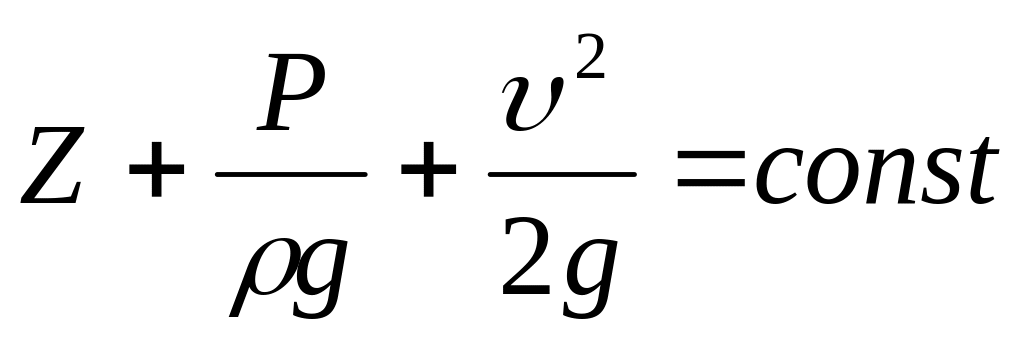 Позначимо постійну величину const через Н і запишемо рівняння Бернуллі: