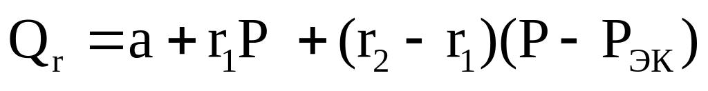 Таким образом, часовой расход тепла при нагрузке, превышающей экономическую, состоит из расхода тепла на холостой ход расхода тепла на выработку электроэнергии по характеристике, не имеющей излома, с относительным приростом r1 и перерасхода тепла на выработку электроэнергии в связи с тем, что часть электроэнергии вырабатывается при нагрузке, превышающей экономическую, то есть в зоне перегрузки с большим относительным приростом.