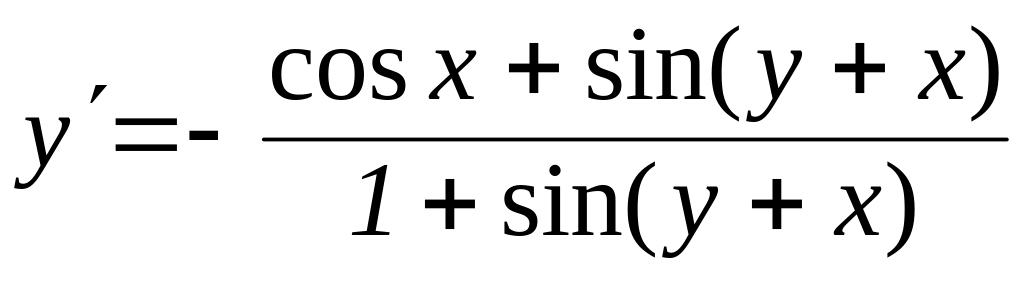 Продиференціюємо останню рівність, враховуючи, що cos(y(x)+x) складна функція: