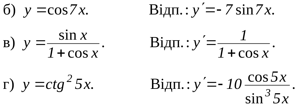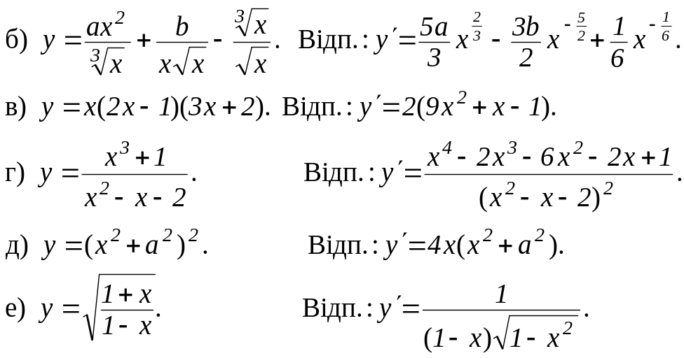 Виведіть формули для похідних функцій