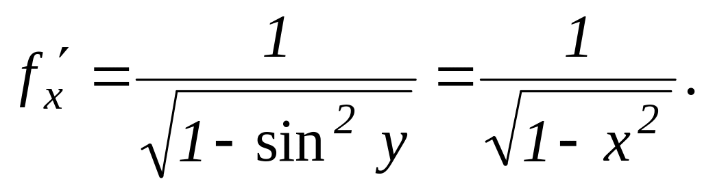 За допомогою теоремою 8.11 отримаємо формули для похідних від обернених тригонометричних функцій.