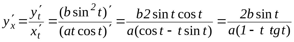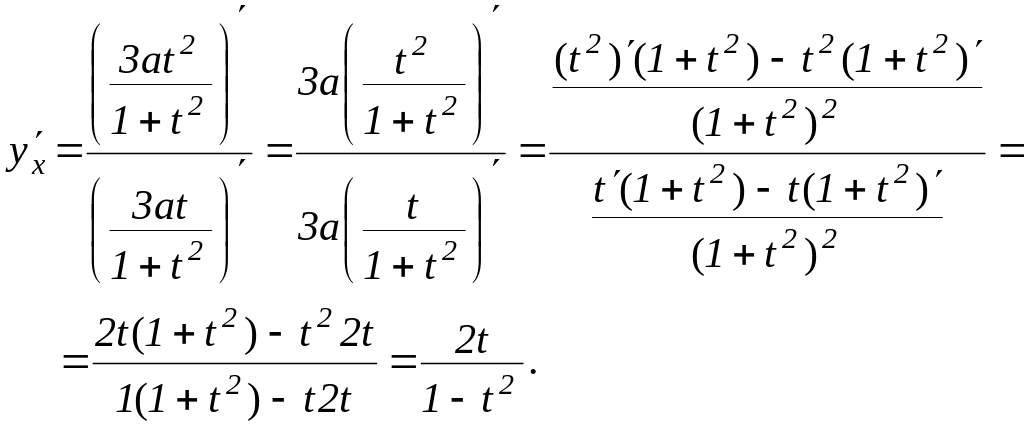 Остання формула дає змогу обчислювати похідну функції, заданої параметрично, не переводячи її в неявно або явно заданий вигляд.