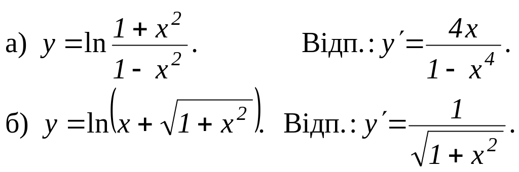 1. Знайти похідну функції: