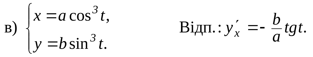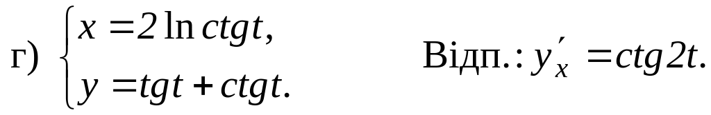 5. Знайти похідні функцій, заданих неявно і параметрично: