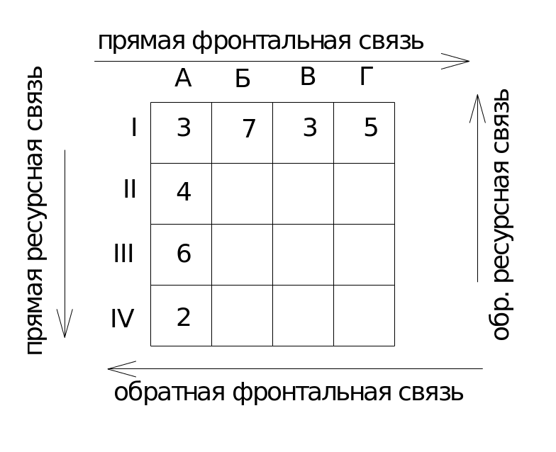 Прямая ресурсная связь - связь между сроками выполнения работ одного вида, выполняемых на различных фронтах.