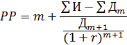 Дисконтированный срок окупаемости – продолжительность периода, в течение которого сумма чистых доходов, дисконтированных на момент завершения инвестиций равна сумме наращенных инвестиций.