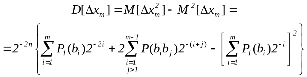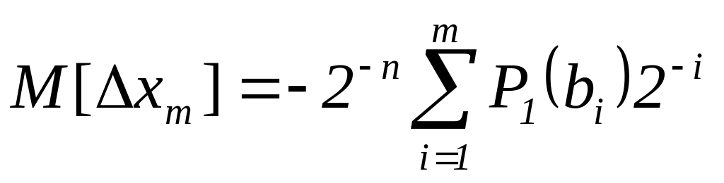 В каждом разряде bi может принимать значения 0 или 1. Поэтому математическое ожидание M[bi] равно вероятности появления единицы в соответствующем разряде P1(bi), которая при равновероятном законе распределения равна 0,5. Для любого другого закона распределения