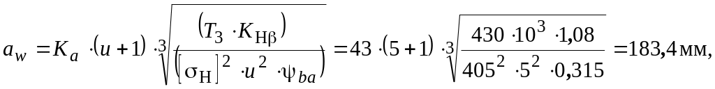 Для редукторов общего назначения с внешним зацеплением определяем межосевое расстояние из условия контактной выносливости активных поверхностей зубьев