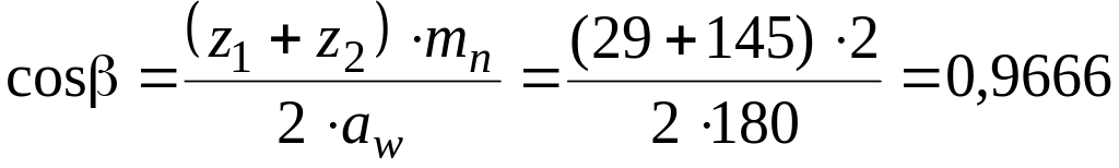 d2 = (mn / cos β) z2 = ( 2 / 0,9666 ) 145 = 300 мм;