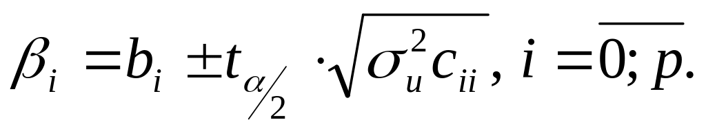 Інтервальні прогнози результативної змінної для побудованої моделлі обчислюються за формулами: