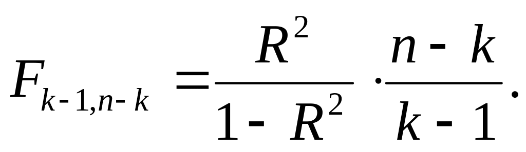 Для перевірки адекватності багатофакторної моделі, як і у випадку простої лінійної моделі, використовується F - критерій Фішера. Розраховується F - статистика Фішера з n-k та k-1 ступенями вільності: