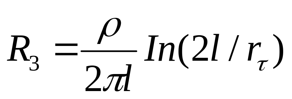 Якщо заземлювачем слугує вертикальна забита труба, то його опір розраховують за формулою