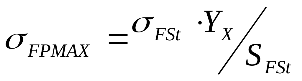 Допускаемые изгибные напряжения при действии максимальной нагрузки [3,с.15]: