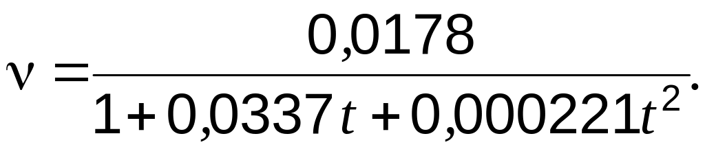 1. По замеренной температуре воды t определить кинематический коэффициент вязкости, см2/с,