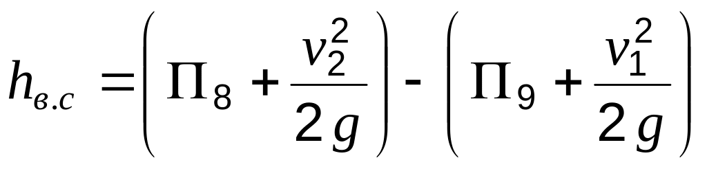 где в.с – коэффициент местного сопротивления при внезапном расширении потока.