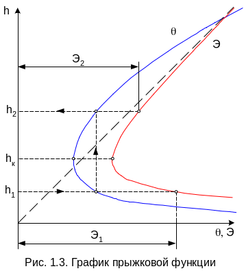 В основном уравнении прыжка левая часть представляет собой некоторую функцию от глубины , а правая часть такая же функция от глубины .