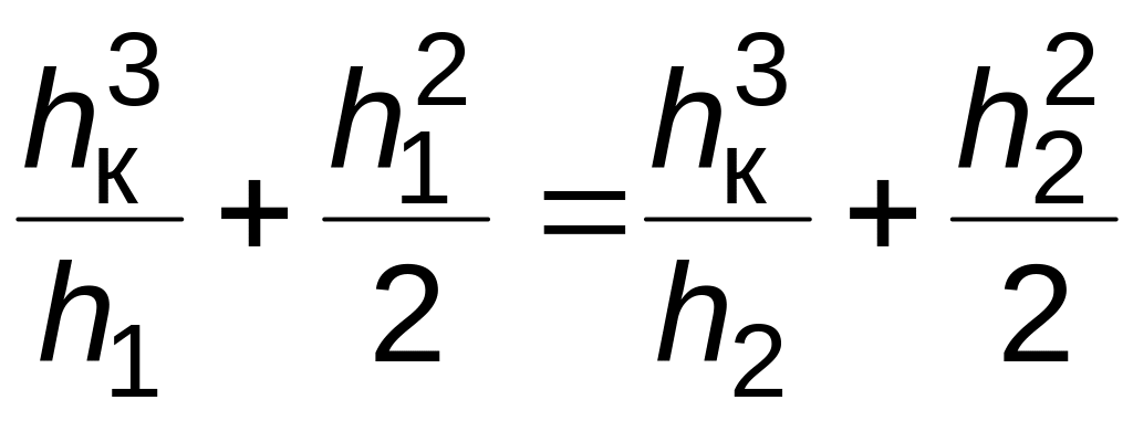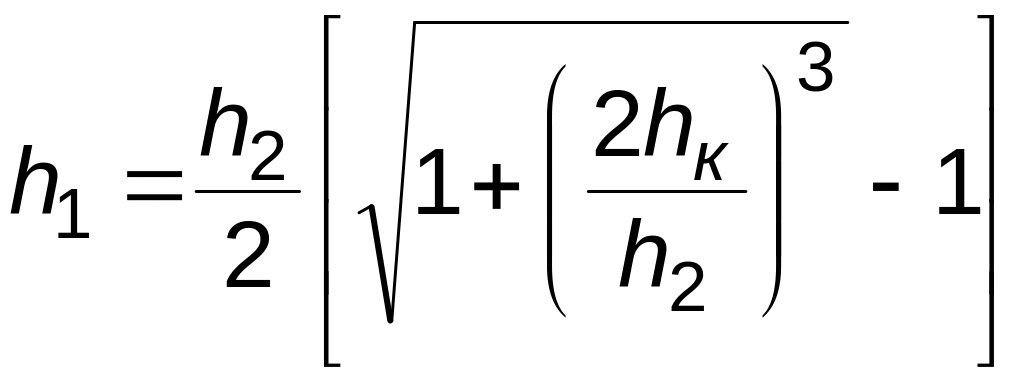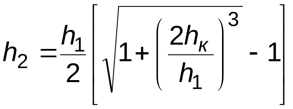 Пользуясь этими уравнениями, можно определить в случае прямоугольного русла одну сопряженную глубину ( или ), если другая сопряженная глубина ( или ) известна.