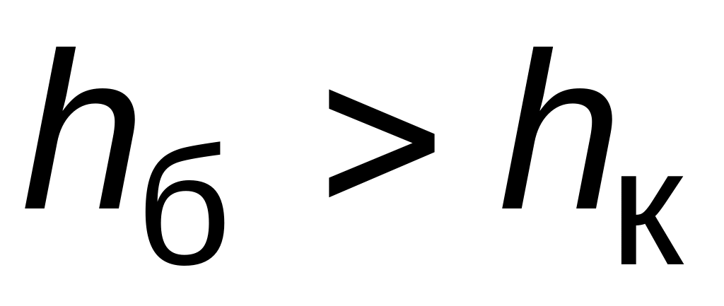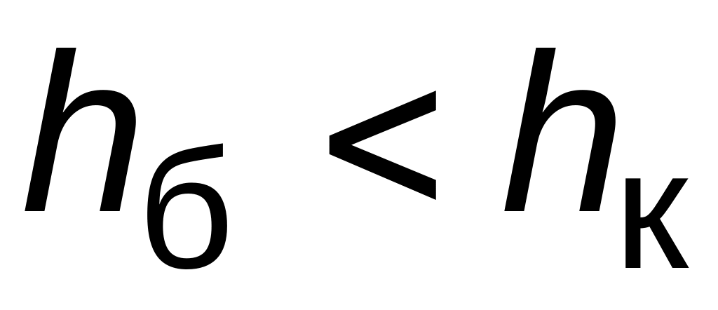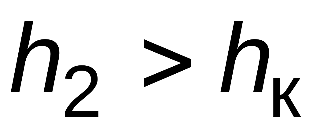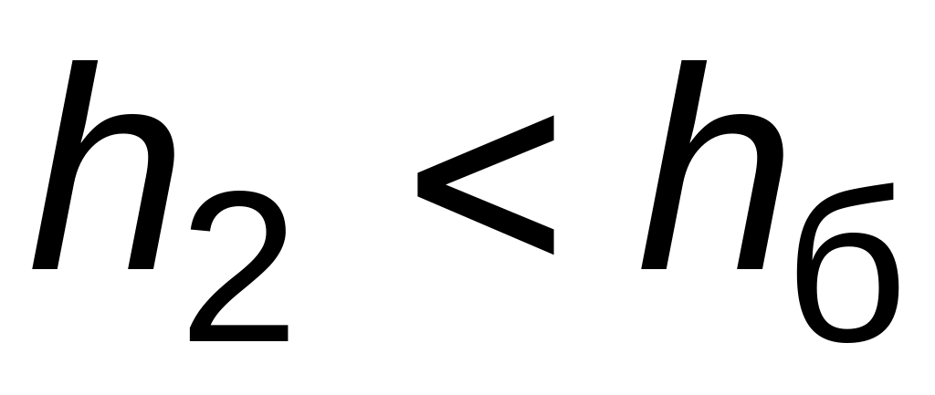 Сопоставляя h2 hб, h2 hб определяют форму затопления гидравлического прыжка. Значение бытовой глубины в нижнем бьефе hб определяют либо расчетом по уравнению равномерного движения потока в открытом русле, либо по данным гидрометрических наблюдений.