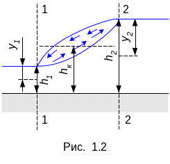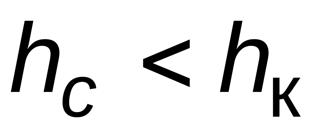 Гидравлический прыжок появляется всегда, когда свободная поверхность при увеличении глубины пересекает линию критической глубины (линию КК).